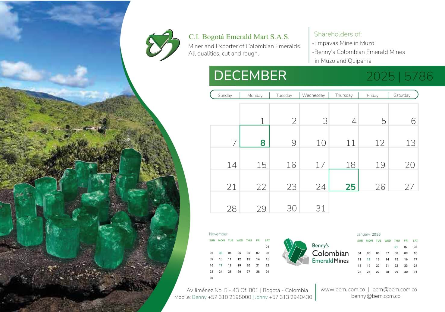 To inquire more about our services and to truly experience all C.I. Bogota Emerald Mart has to offer, please feel free to contact us at bem@bem.com.co and learn how we have been a world leader and trusted name in Colombian Emeralds within the international gem community for over 30 years!